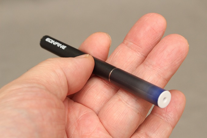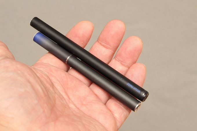 使い捨て版よりも11mmほど短いです。太さは使い捨て版が9.3mm、充電版が9.2mm。