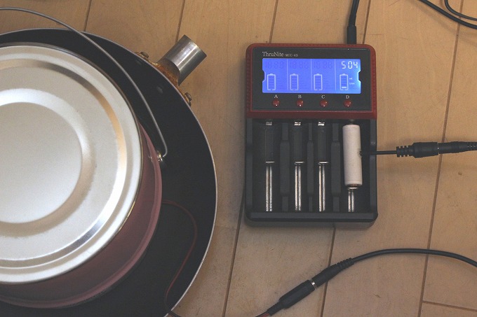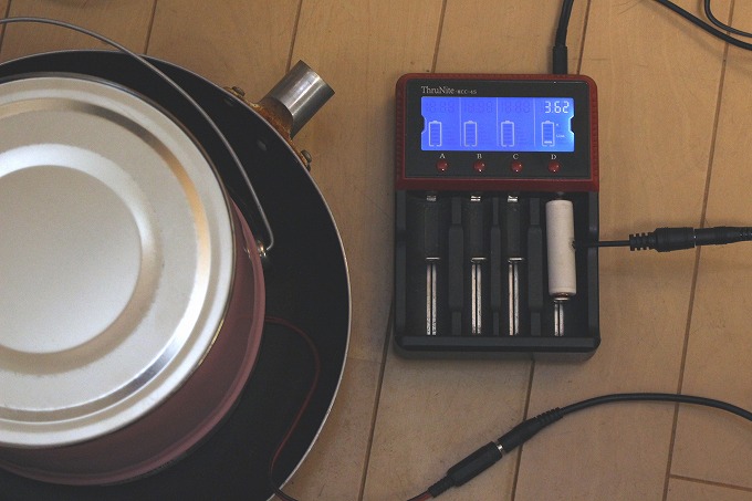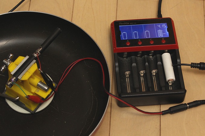 先日作った汎用充電器用アダプターを使って充電します。