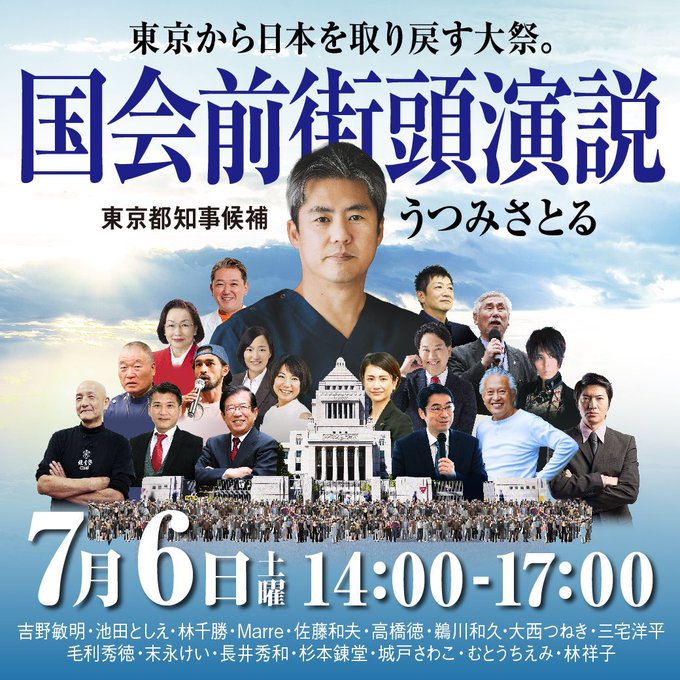 集え、1万人  国会前街頭演説 7月6日(土) 14:00 – 17:00