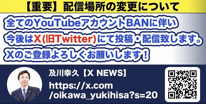 WCH議員連盟の設立総会にも参加していた、及川幸久さんのYoutubeチャンネルが突然アカウント停止されました。