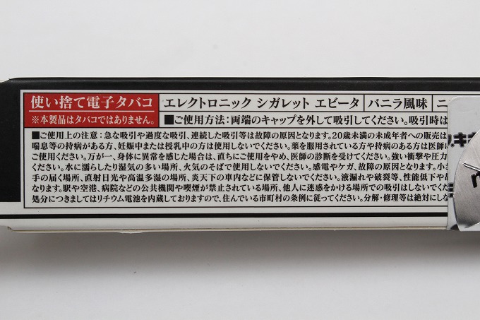 使い捨て電子タバコ エビータ eVita バニラ風味 購入価格500円(税別)