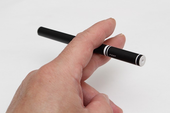 吸うと先端がゆっくり赤く光り、蒸気が発生します。約500回吸うと先端のLEDが点滅して、寿命を知らせるとのこと。500円ほどの商品ですが、よく出来たおもちゃです。