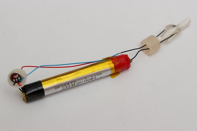 先端にスイッチが付いていたのは意外でした。この小さなモジュールでON/OFFし、寿命も感知するというのは凄いです。500回で点滅というのは電圧が下がると動作するということなのでしょうか。このモジュールの「吸うとONのスイッチ」や、「電圧低下を知らせる点滅LED」は別の自作アイテムに使えそうです。