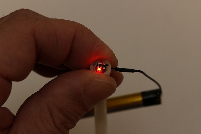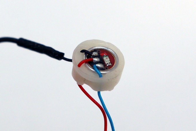 先端にはチップLEDが付いています。この裏に回路基板が入っていそうな感じ。