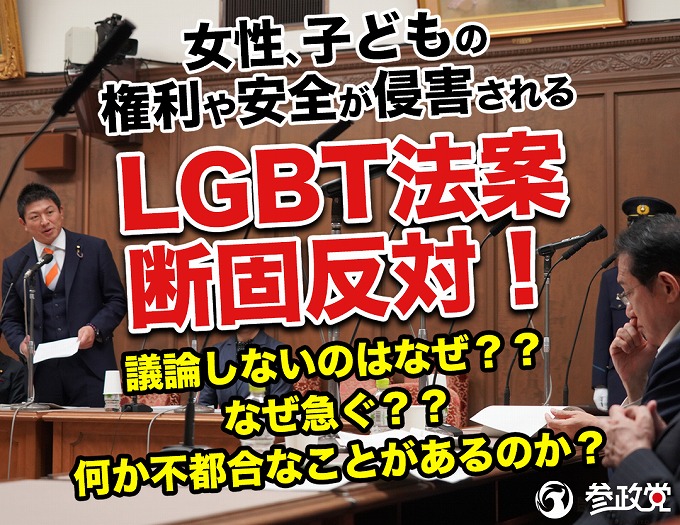 参政党以外、与野党揃ってこの法案を通そうとしているのは異常ですよ。右も左も関係ない。メリットの無い法律には絶対反対。